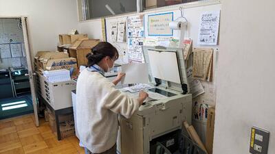 本日(2月14日)、PTA校外安全部の方々が、来年度の新通学班についての冊子を作成するために、来校し印刷作業をしてもらってます。
