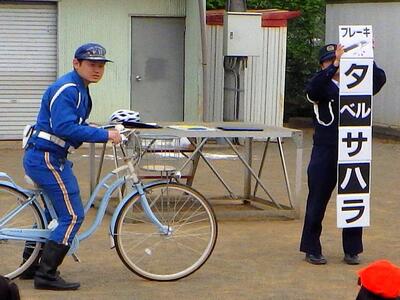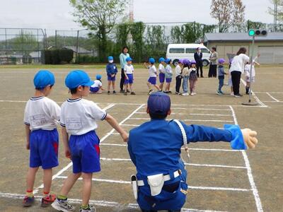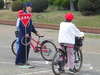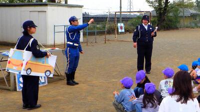 小川警察署の署員さんにお越しいただき、1・2年生は横断歩道の正しい渡り方について、3~6年生は自転車の正しい乗り方について学習をしました。