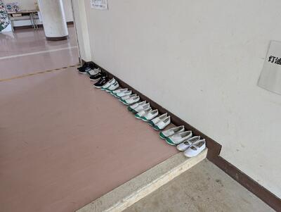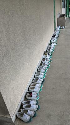 卒業する6年生の下足箱、 水泳授業での脱いだ上履きの様子、 けやき学級が農作業をするために脱いだ上履きの様子など、 志賀小ないでも、『かかとをそろえておくこと』が、身に付いてきました。