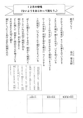 2月の暗唱は『今日はきのうの続きだけれど』です。