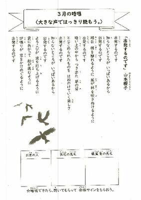 PDFファイルはこちらになります。 → 3月の暗唱『出発するのです』.pdf